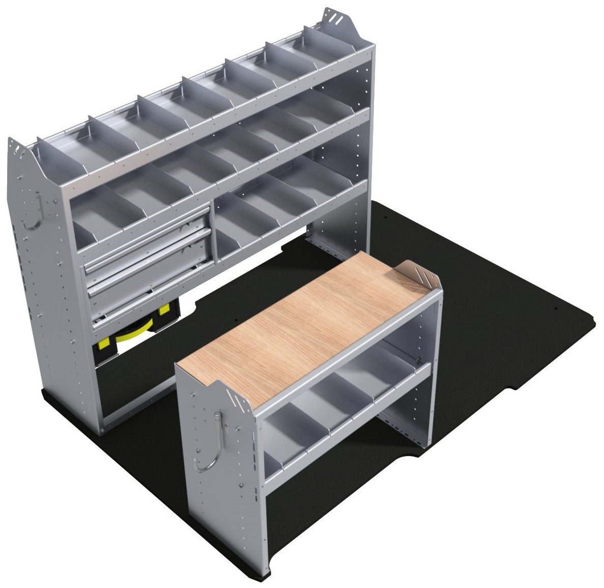 Workbench 34.5"Wide x 15.5"Deep x 30"high with 1 standard divider shelf and a 1.5" thick hardwood worktop |