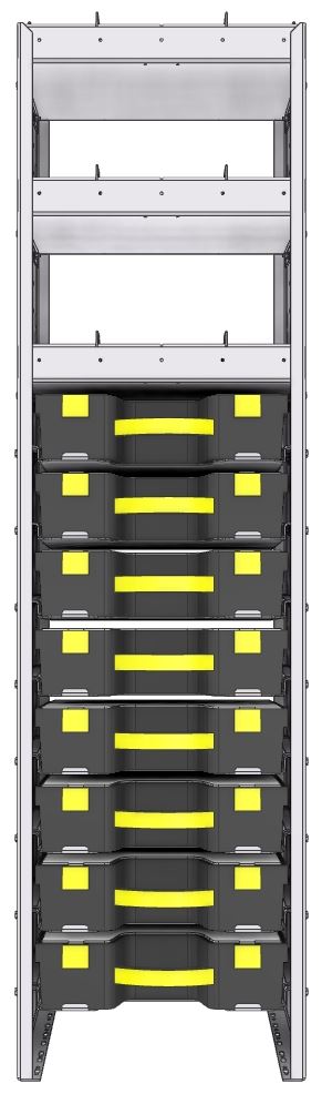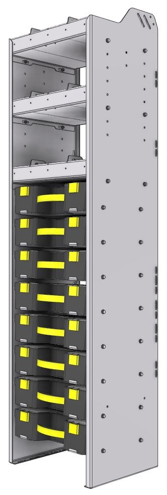 Square back carry case cabinet 18-7/8"Wide x 15.5"Deep x 72"High with 8 Carrycases