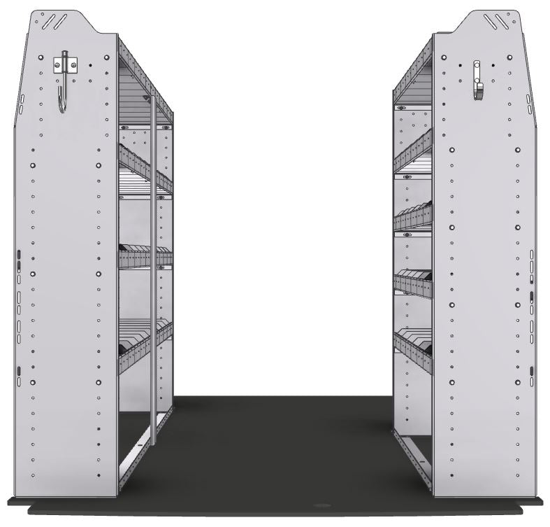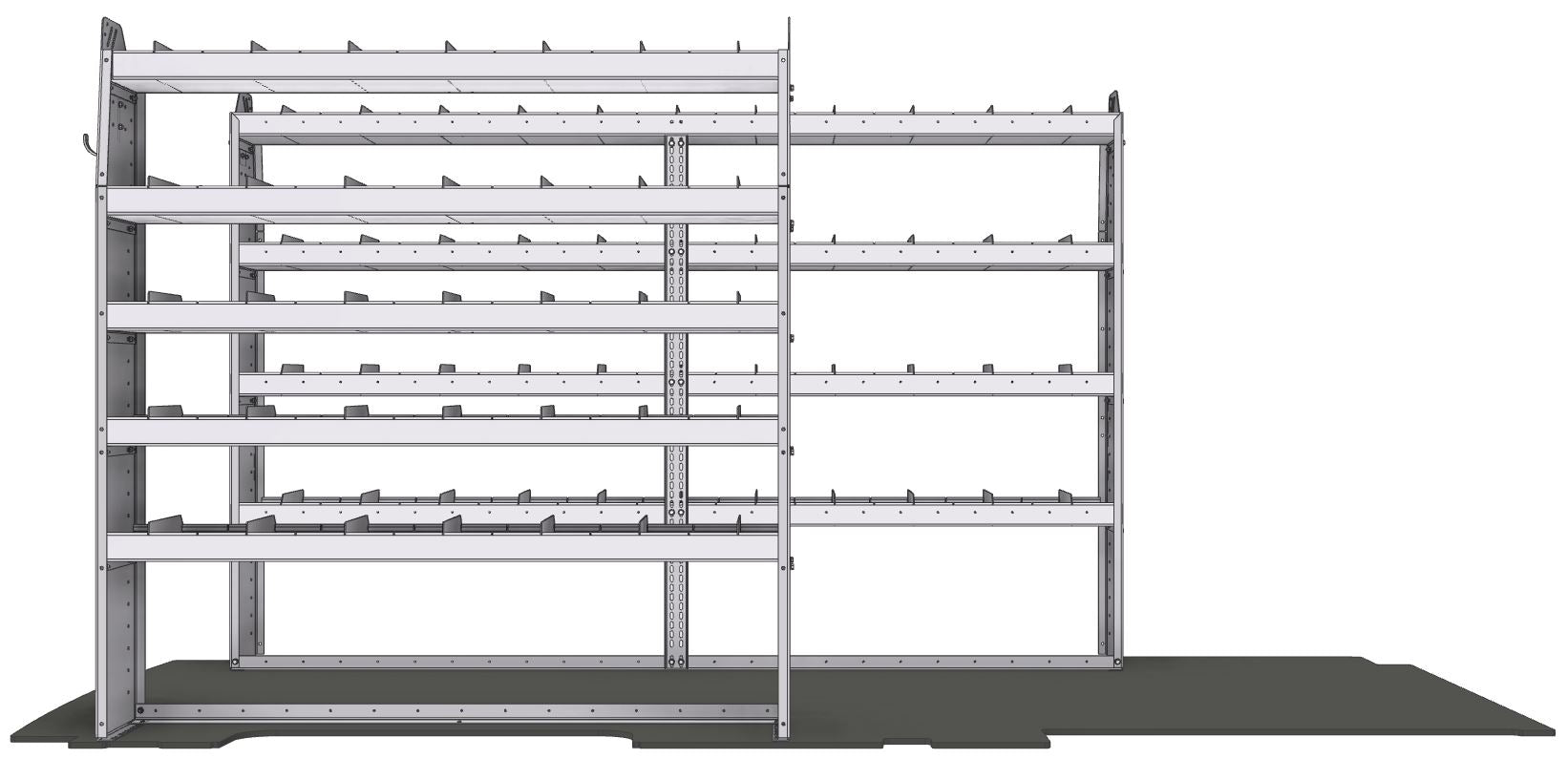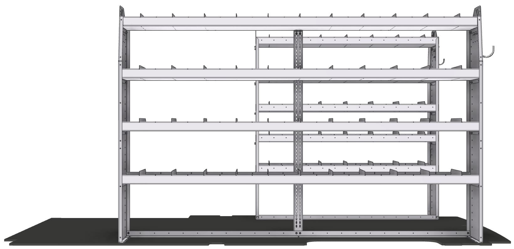 | • 1X | 21-9363-4 | Profiled back shelf unit 96"Wide x 13.5"Deep x 63"High with 4 shelves | |