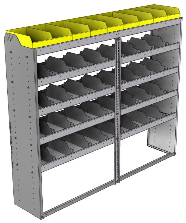 Square back bin separator combo shelf unit 77.750"Wide x 15.5"Deep x 63"High with 5 shelves