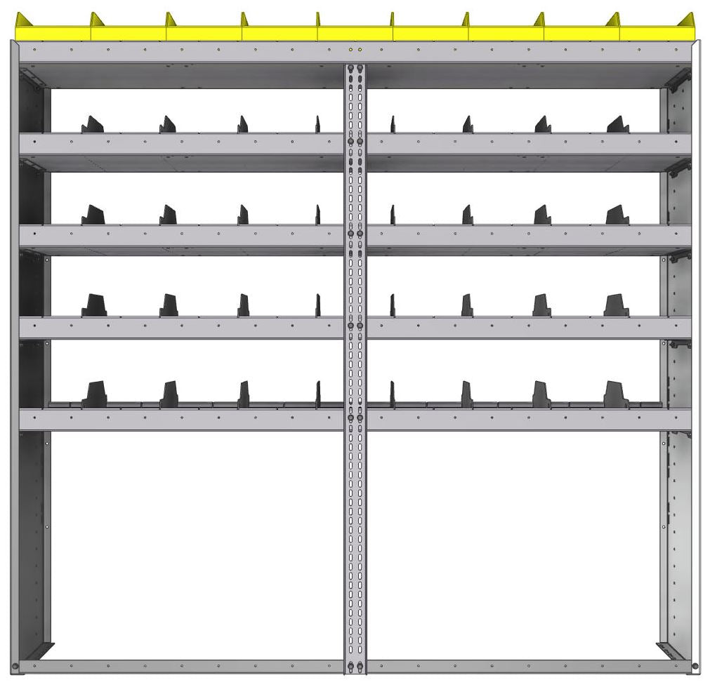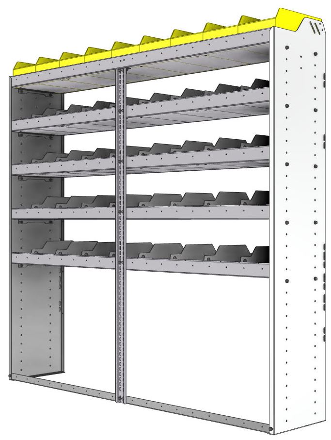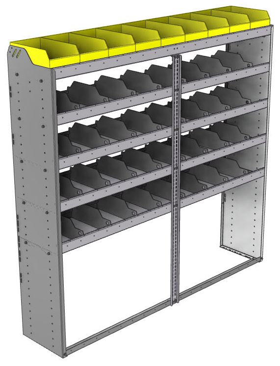 Square back bin separator combo shelf unit 77.750"Wide x 15.5"Deep x 72"High with 5 shelves