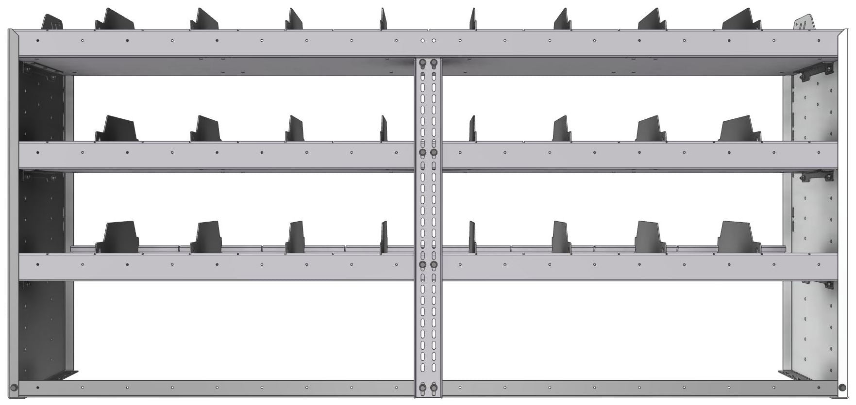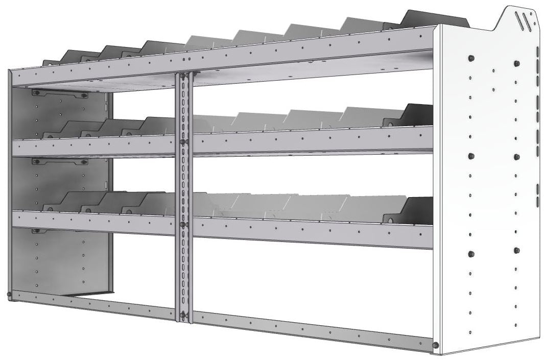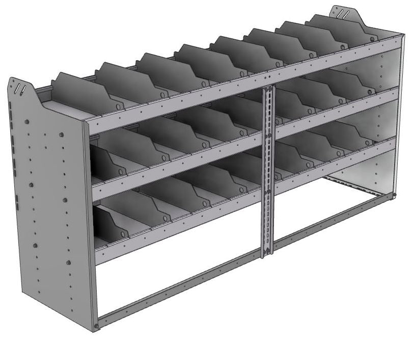 Square back bin separator combo shelf unit 77.750"Wide x 18.5"Deep x 36"High with 3 shelves