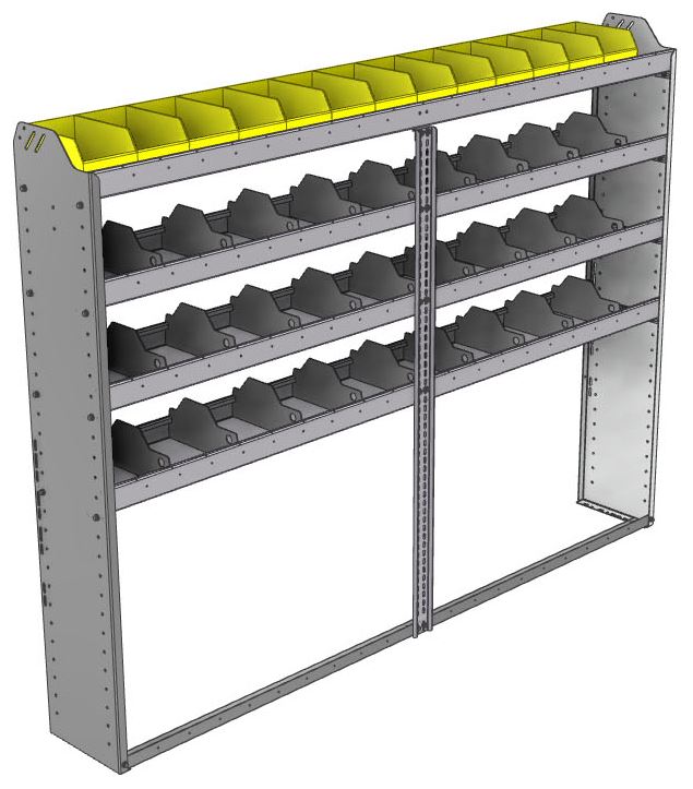 Square back bin separator combo shelf unit 86.375"Wide x 11.5"Deep x 63"High with 4 shelves