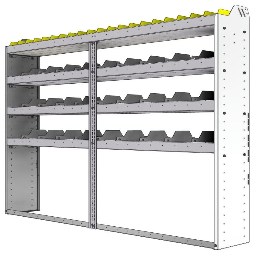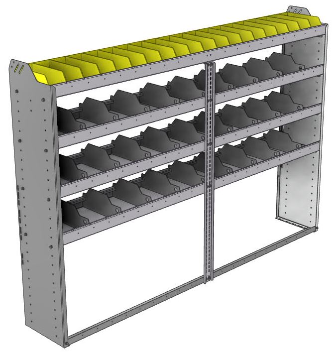 Square back bin separator combo shelf unit 86.375"Wide x 13.5"Deep x 58"High with 4 shelves