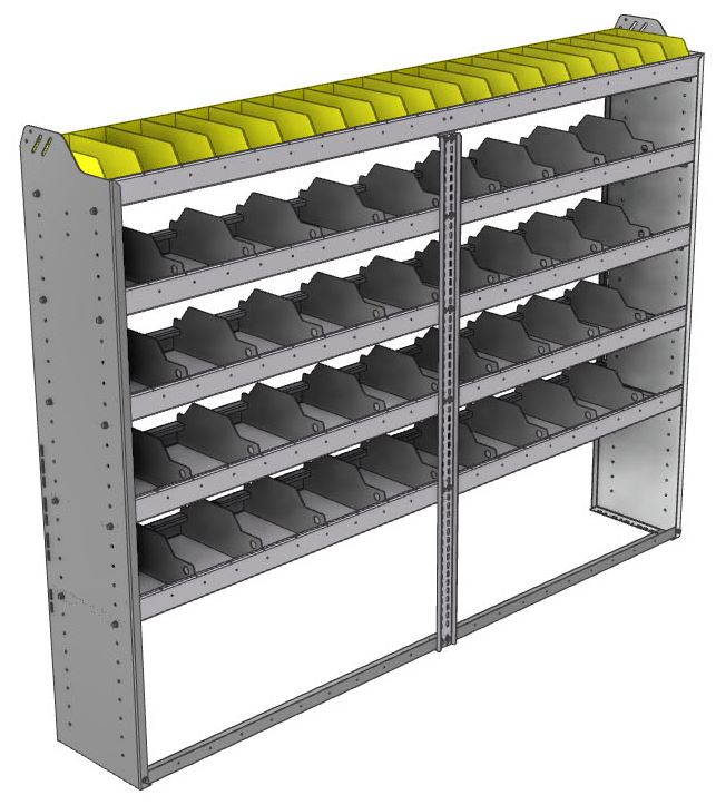 Square back bin separator combo shelf unit 86.375"Wide x 13.5"Deep x 63"High with 5 shelves