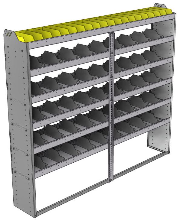 Square back bin separator combo shelf unit 86.375"Wide x 13.5"Deep x 72"High with 6 shelves