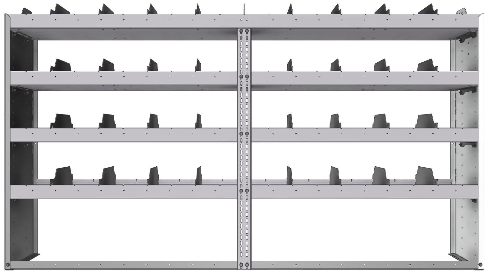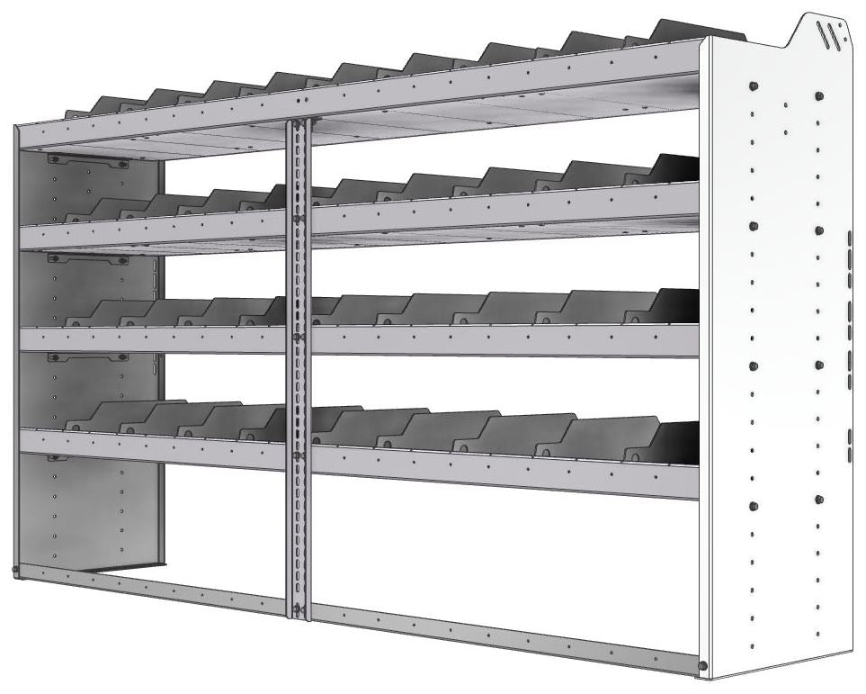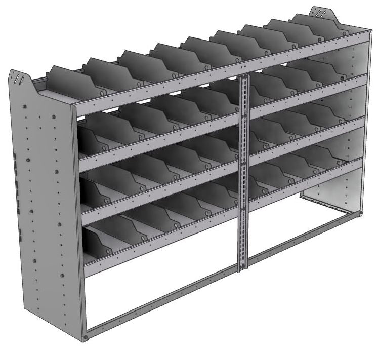 Square back bin separator combo shelf unit 86.375"Wide x 18.5"Deep x 48"High with 4 shelves