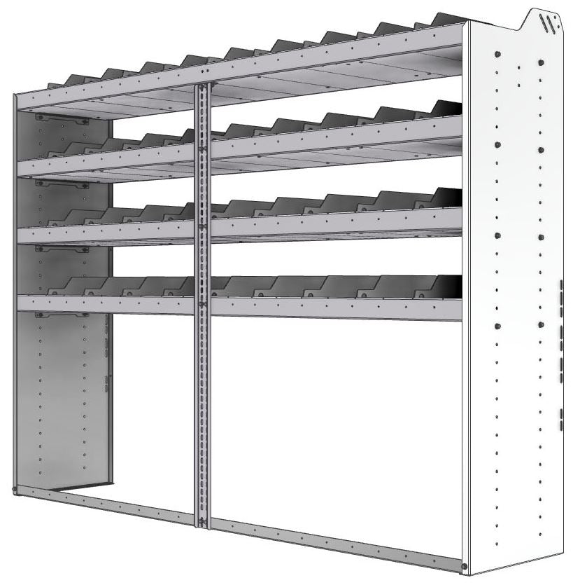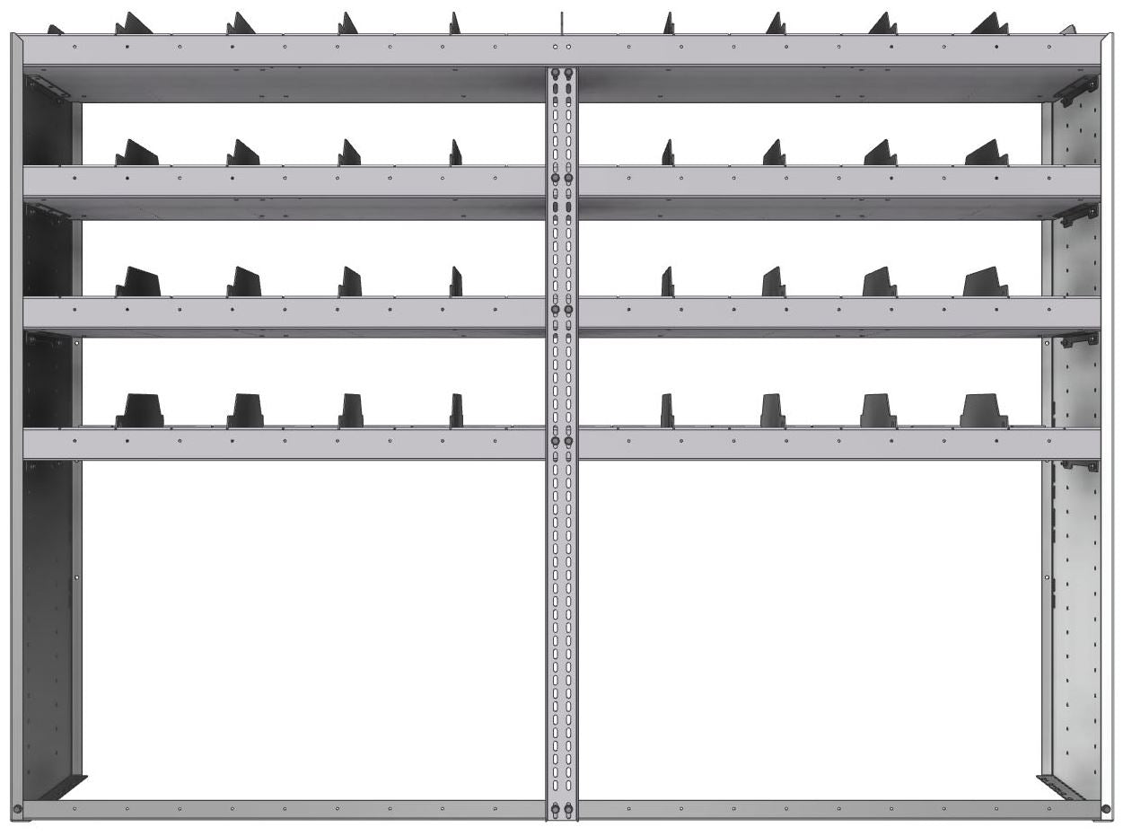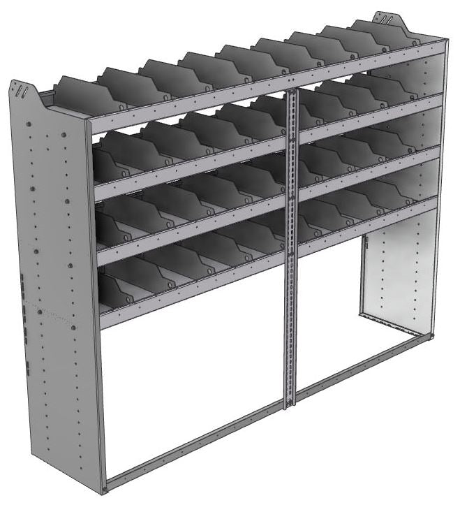 Square back bin separator combo shelf unit 86.375"Wide x 18.5"Deep x 63"High with 4 shelves