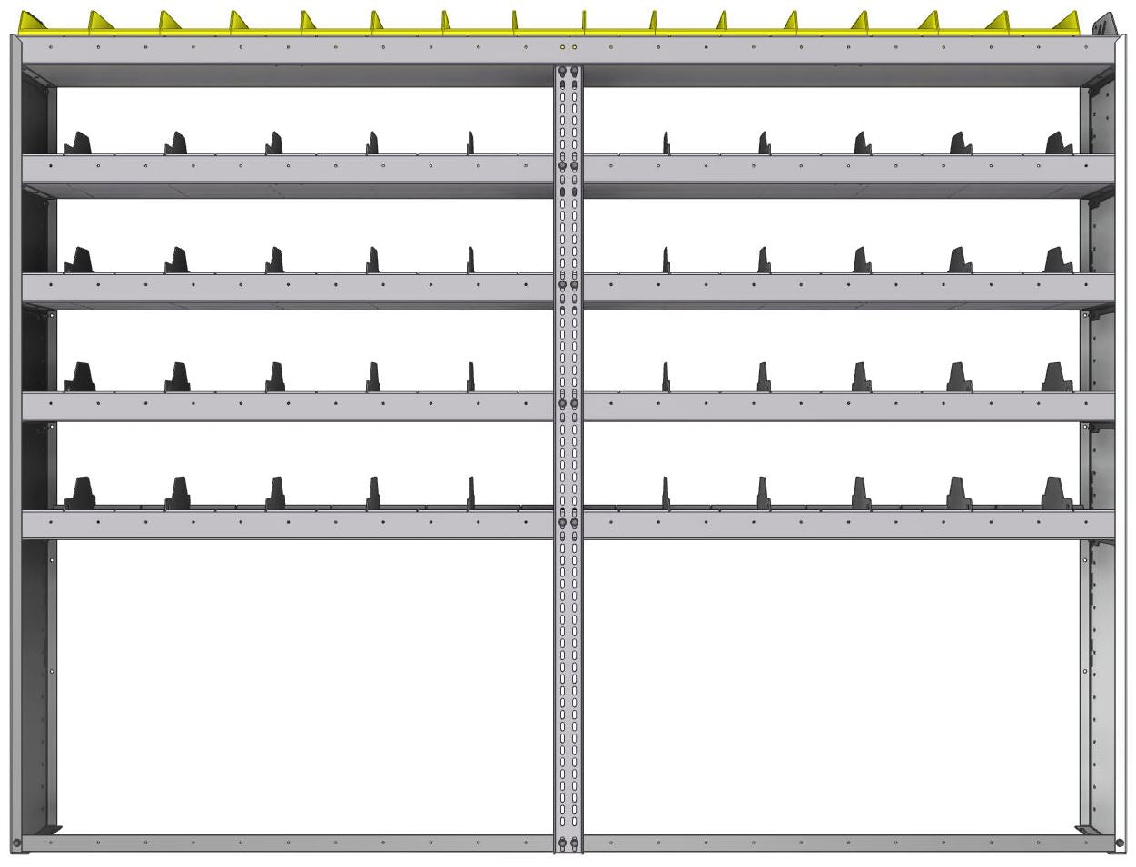 Square back bin separator combo shelf unit 95"Wide x 11.5"Deep x 72"High with 5 shelves