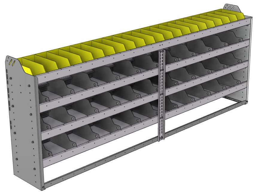 Square back bin separator combo shelf unit 95"Wide x 13.5"Deep x 36"High with 4 shelves