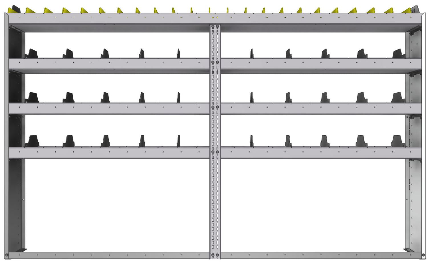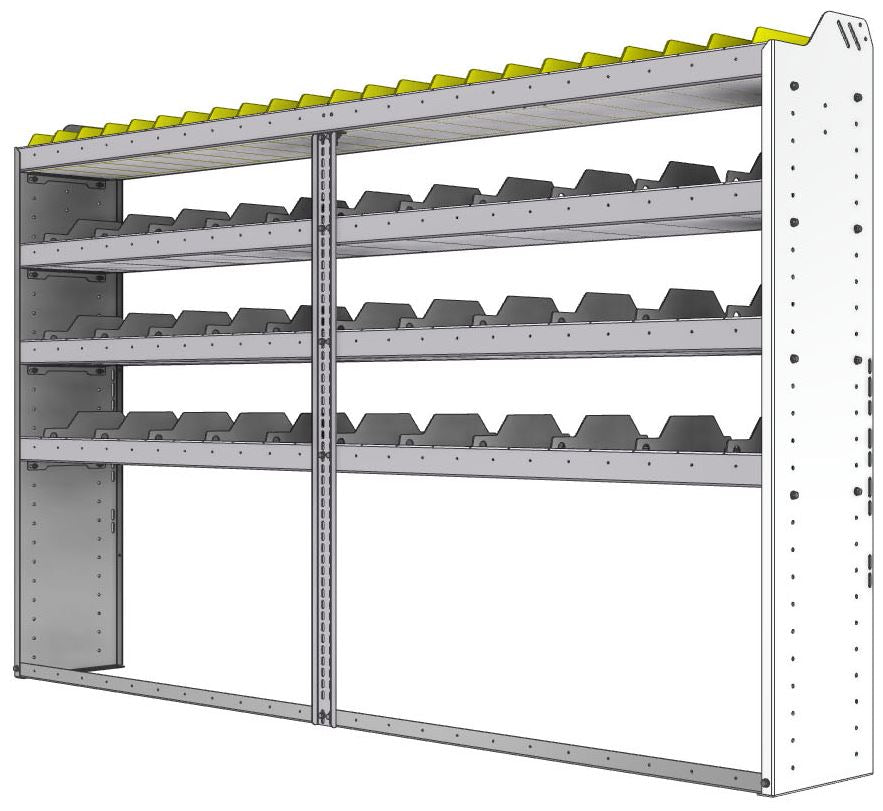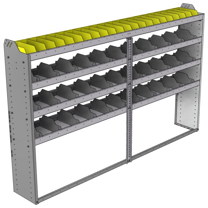Square back bin separator combo shelf unit 95"Wide x 13.5"Deep x 58"High with 4 shelves
