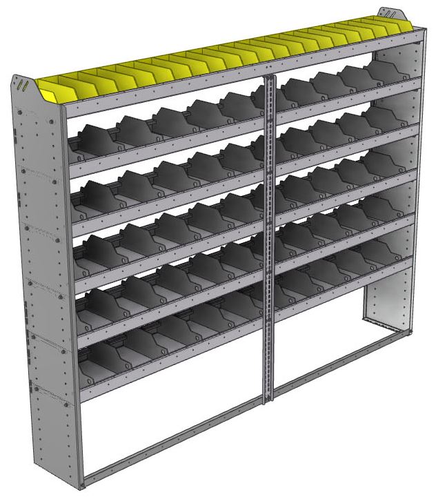 Square back bin separator combo shelf unit 95"Wide x 13.5"Deep x 72"High with 6 shelves
