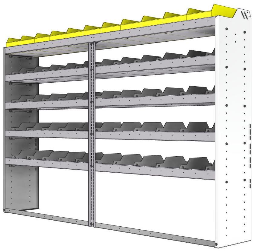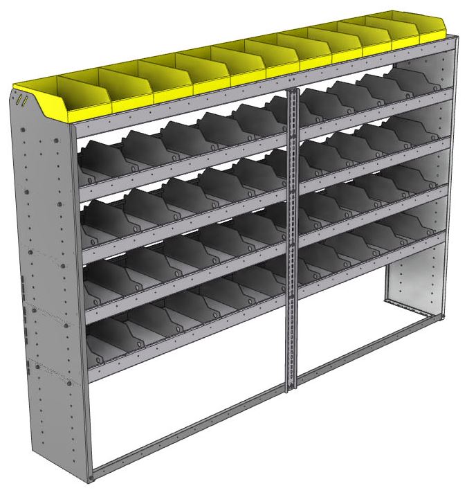 Square back bin separator combo shelf unit 95"Wide x 15.5"Deep x 63"High with 5 shelves