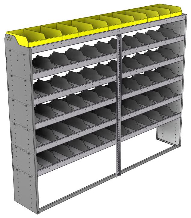 Square back bin separator combo shelf unit 95"Wide x 15.5"Deep x 72"High with 6 shelves