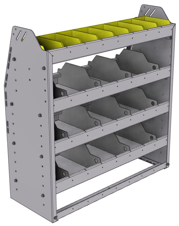 Profiled back bin separator combo Shelf unit 34.5"Wide x 13.5"Deep x 36"High with 4 shelves