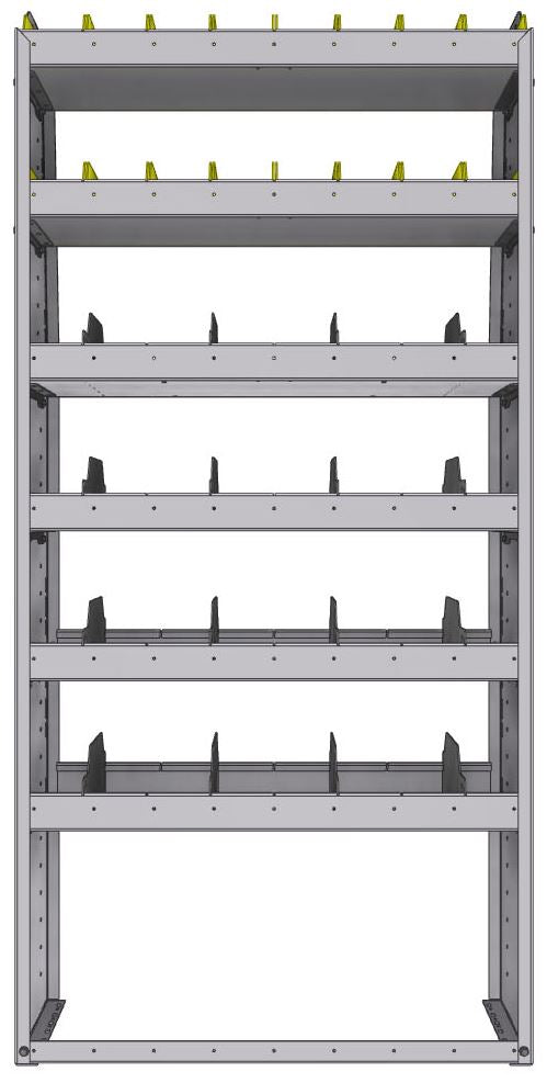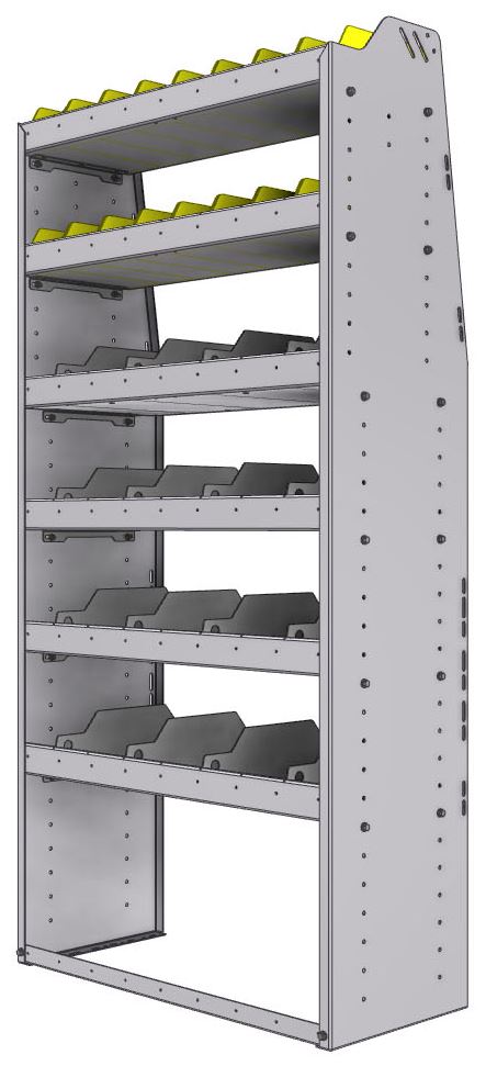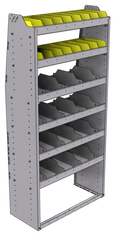 Profiled back bin separator combo Shelf unit 34.5"Wide x 15.5"Deep x 72"High with 6 shelves