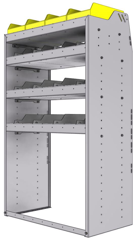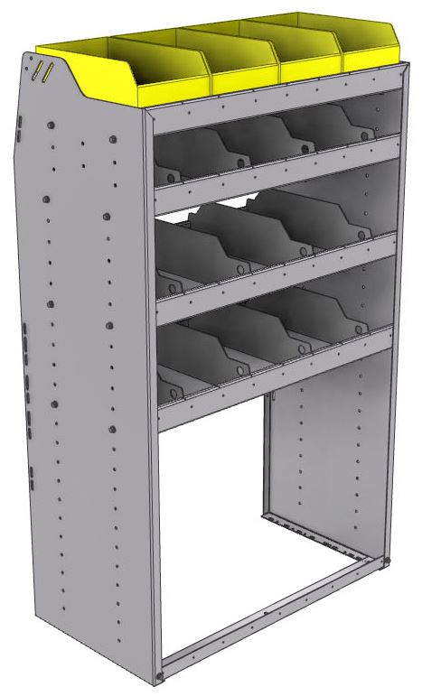 Profiled back bin separator combo Shelf unit 34.5"Wide x 18.5"Deep x 58"High with 4 shelves