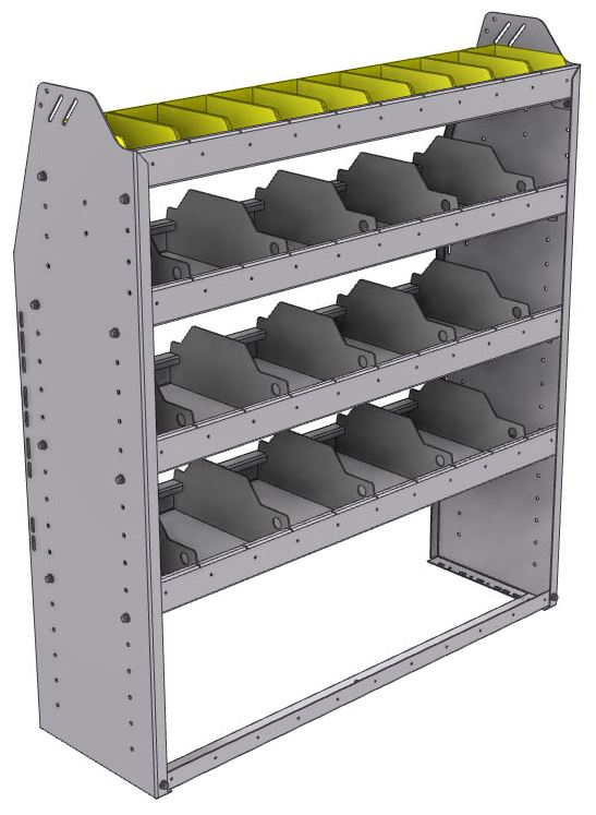 Profiled back bin separator combo Shelf unit 43"Wide x 13.5"Deep x 48"High with 4 shelves