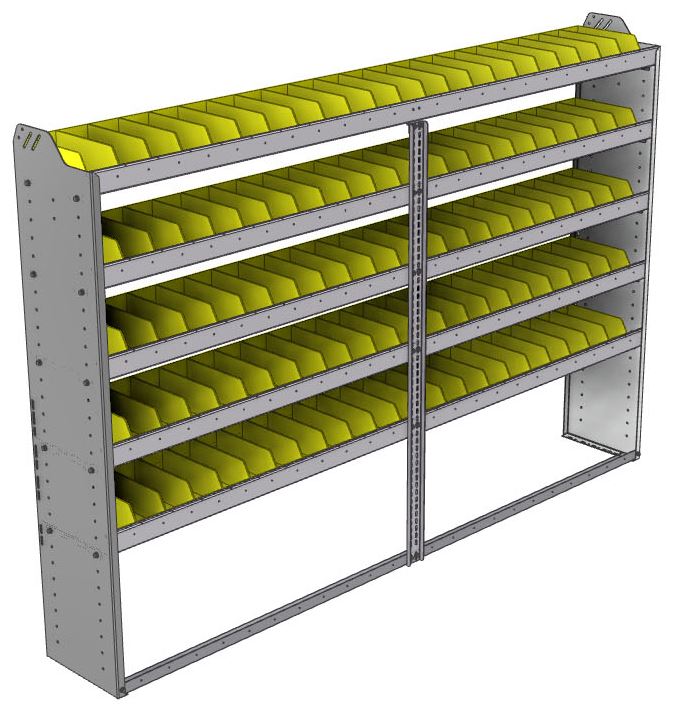 Square back bin shelf unit 95"Wide x 13.5"Deep x 63"High with 5 shelves