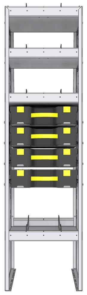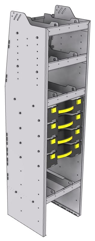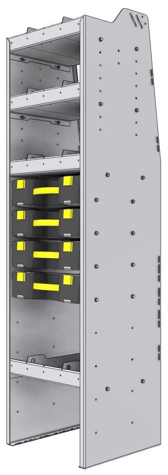 Profiled back carry case cabinet 18-7/8"Wide x 18.5"Deep x 72"High with 4 Carrycases