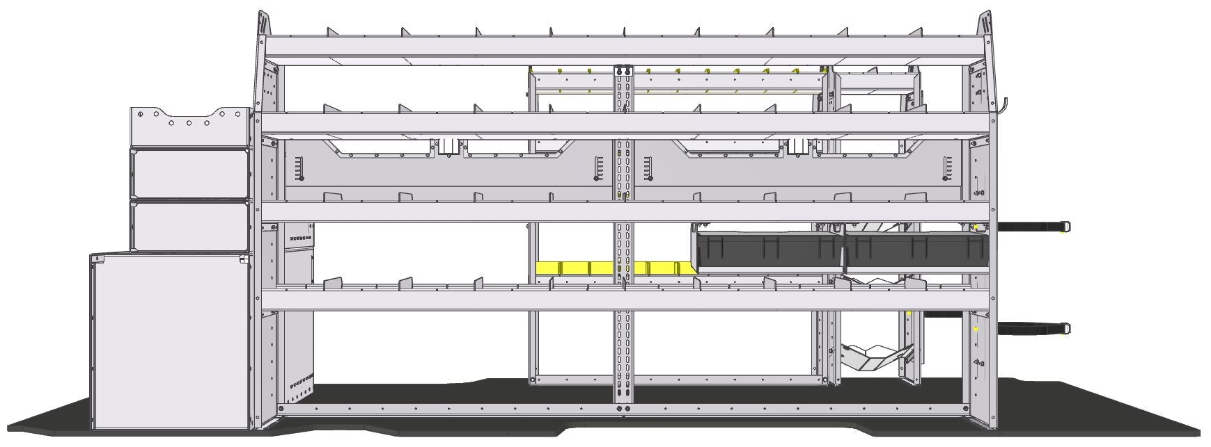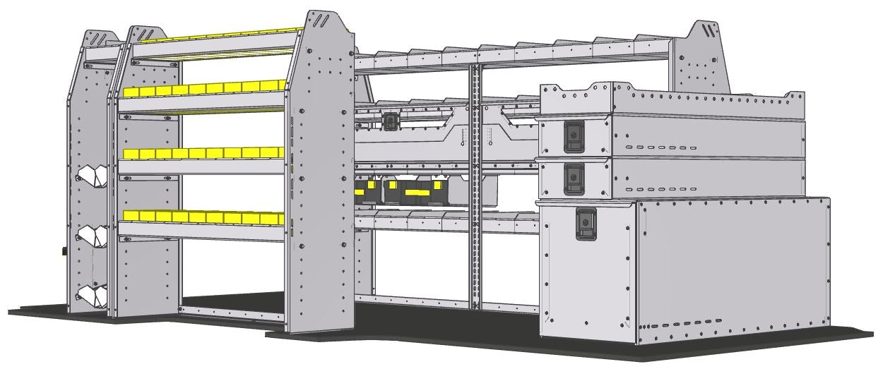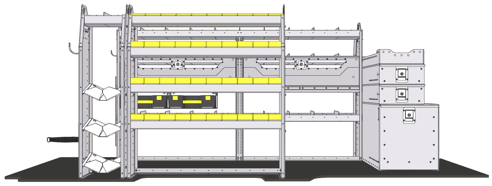 Profiled back bin shelf unit 43"Wide x 13.5"Deep x 48"High with 4 shelves |