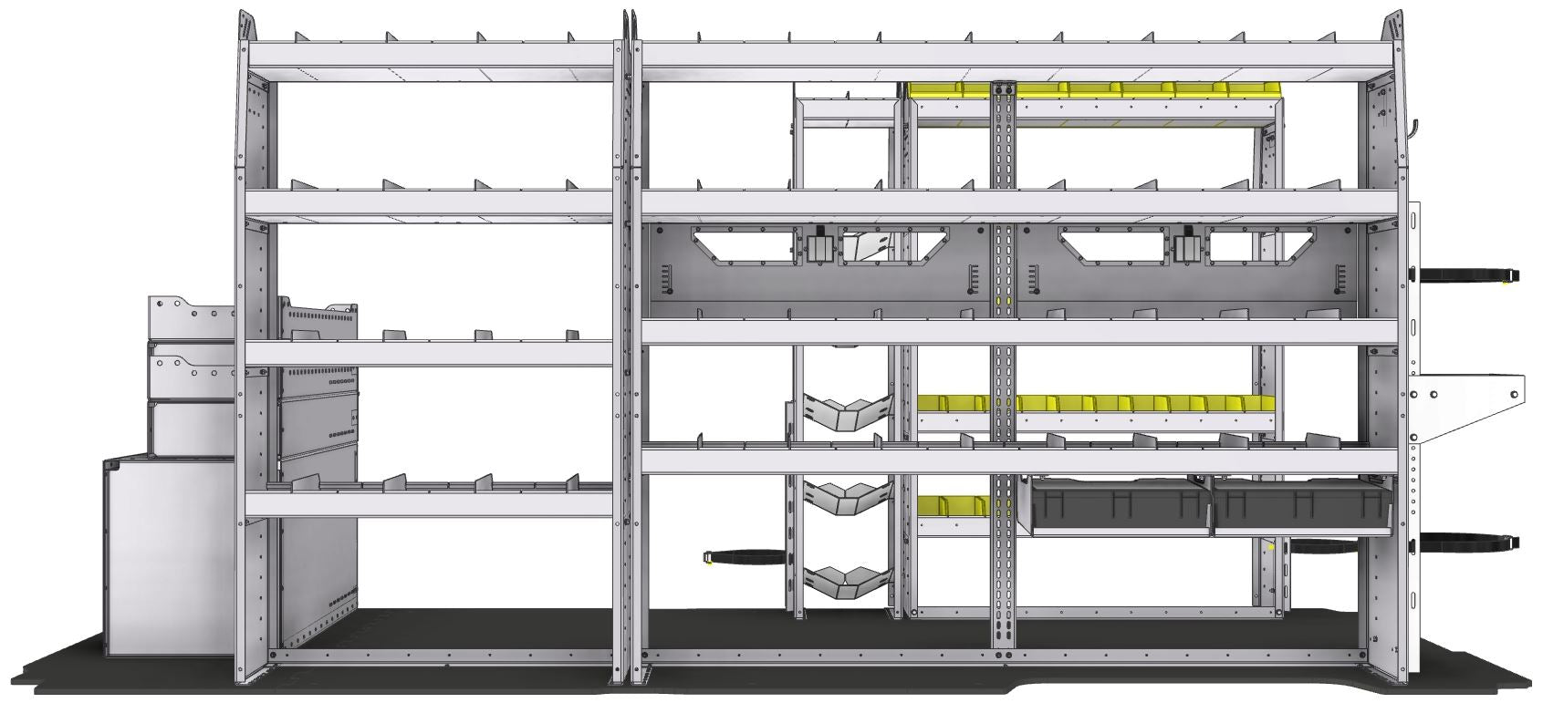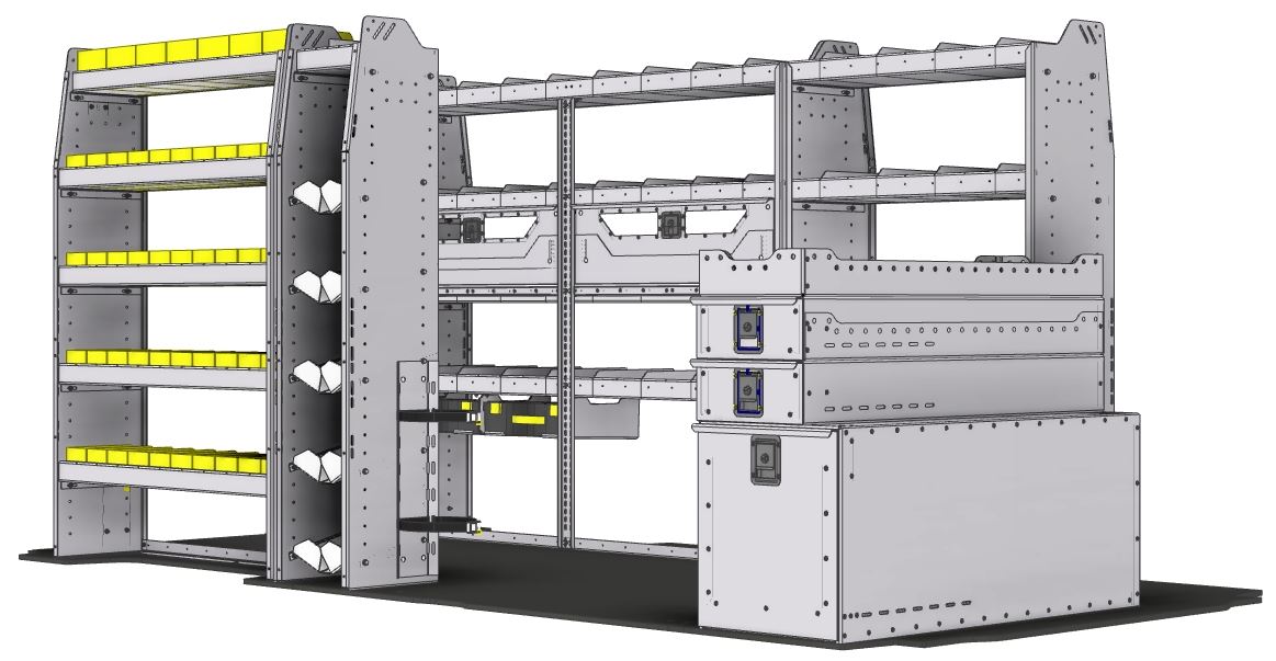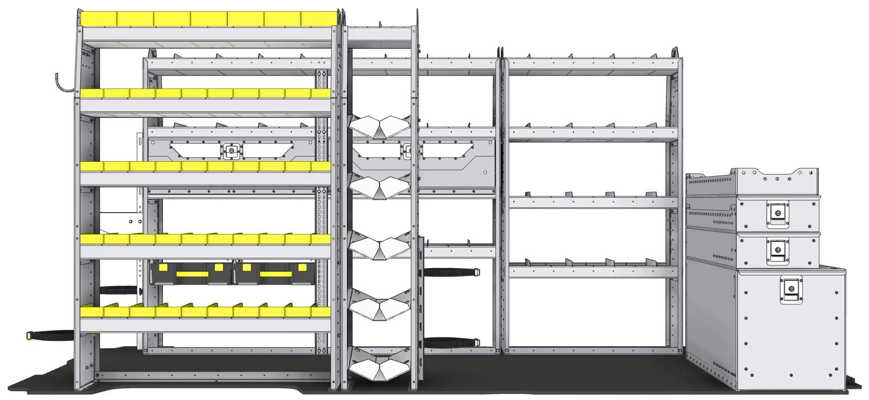 Profiled back bin shelf unit 43"Wide x 13.5"Deep x 63"High with 5 shelves |