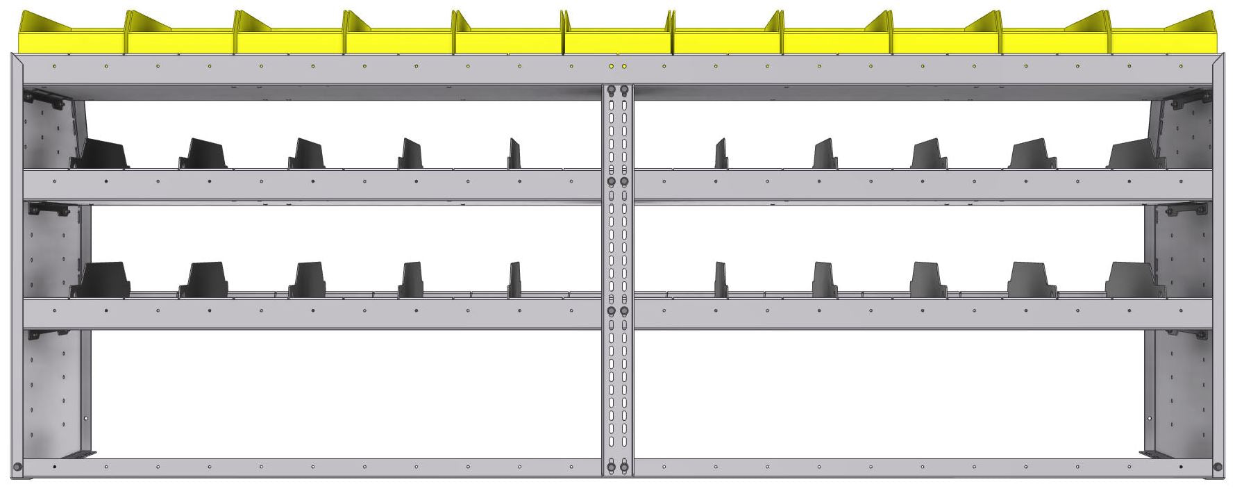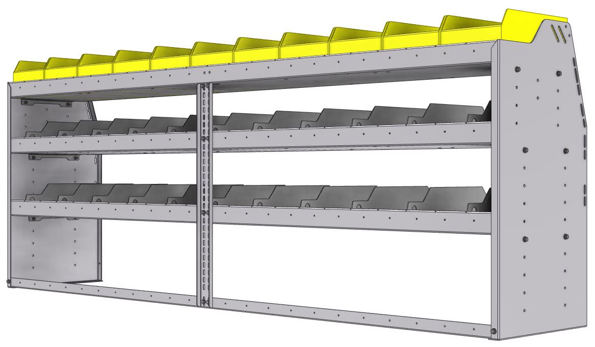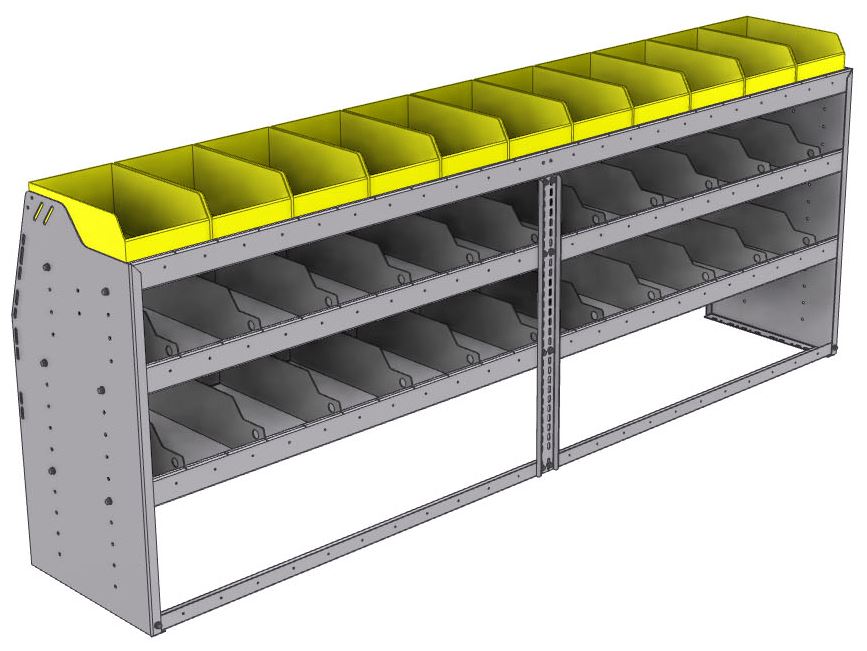 Profiled back bin separator combo Shelf unit 95"Wide x 18.5"Deep x 36"High with 3 shelves