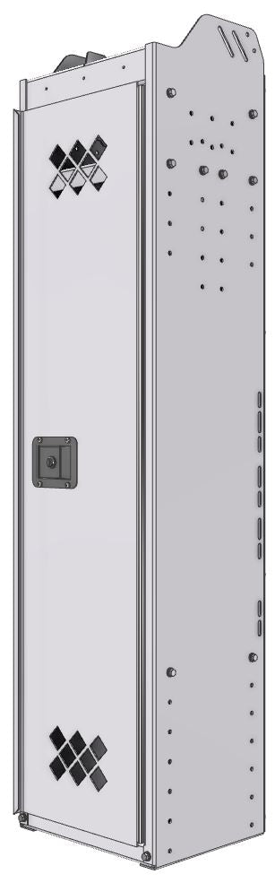 Square back locker cabinet 14"Wide x 11.5"Deep x 58"High with 3 shelves and 2 hooks and hang rod