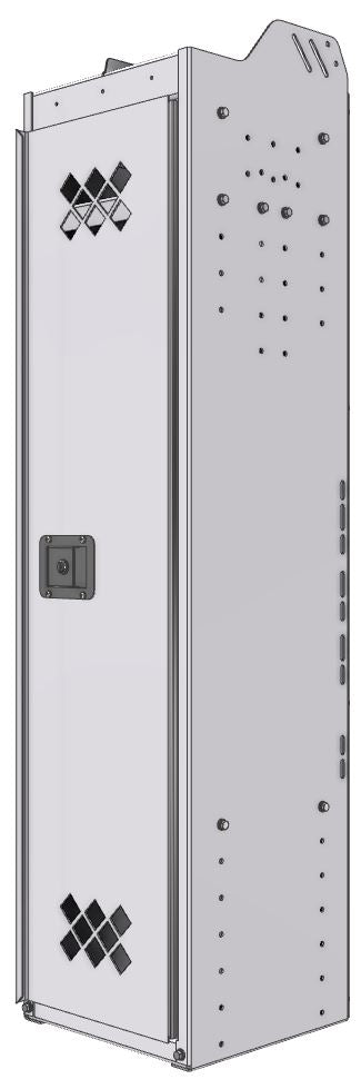Square back locker cabinet 14"Wide x 13.5"Deep x 58"High with 3 shelves and 2 hooks and hang rod