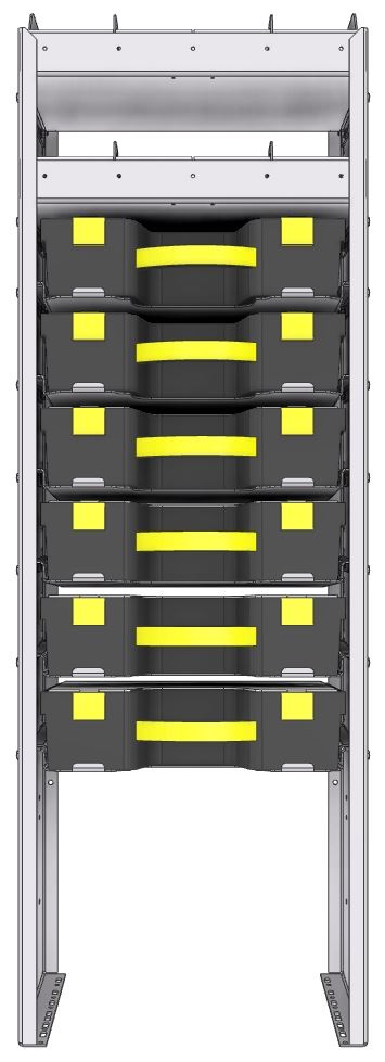 Square back carry case cabinet 18-7/8"Wide x 13.5"Deep x 58"High with 6 Carrycases