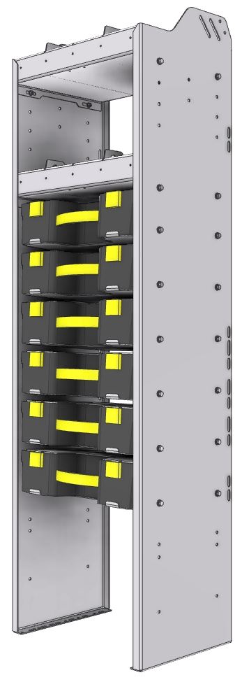 Square back carry case cabinet 18-7/8"Wide x 13.5"Deep x 63"High with 6 Carrycases