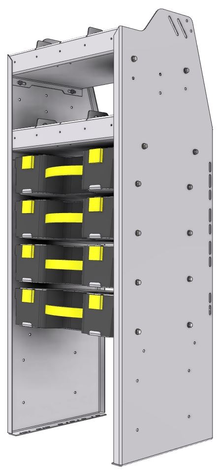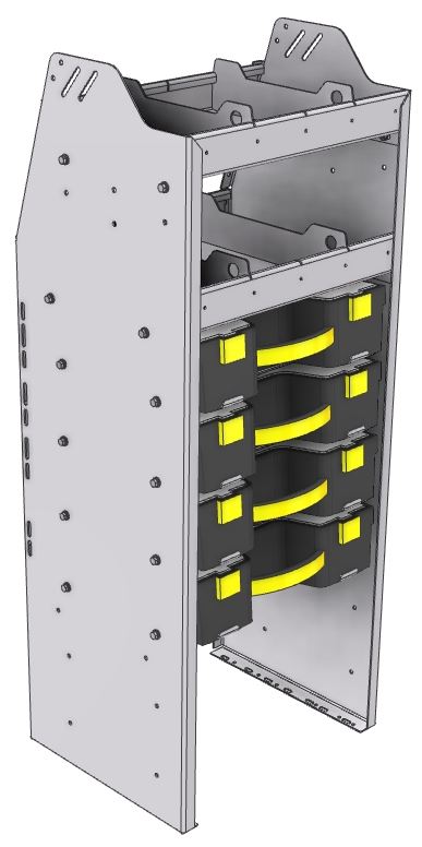 Profiled back carry case cabinet 18-7/8"Wide x 15.5"Deep x 48"High with 4 Carrycases