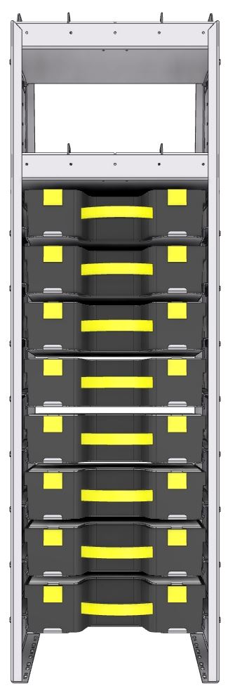 Profiled back carry case cabinet 18-7/8"Wide x 15.5"Deep x 63"High with 8 Carrycases