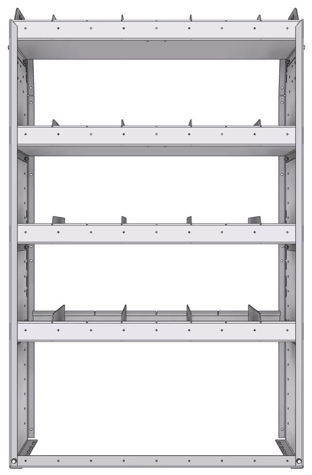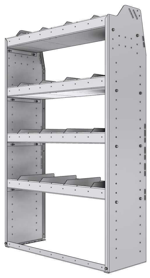 Profiled back shelf unit 36"Wide x 13.5"Deep x 58"High with 4 shelves
