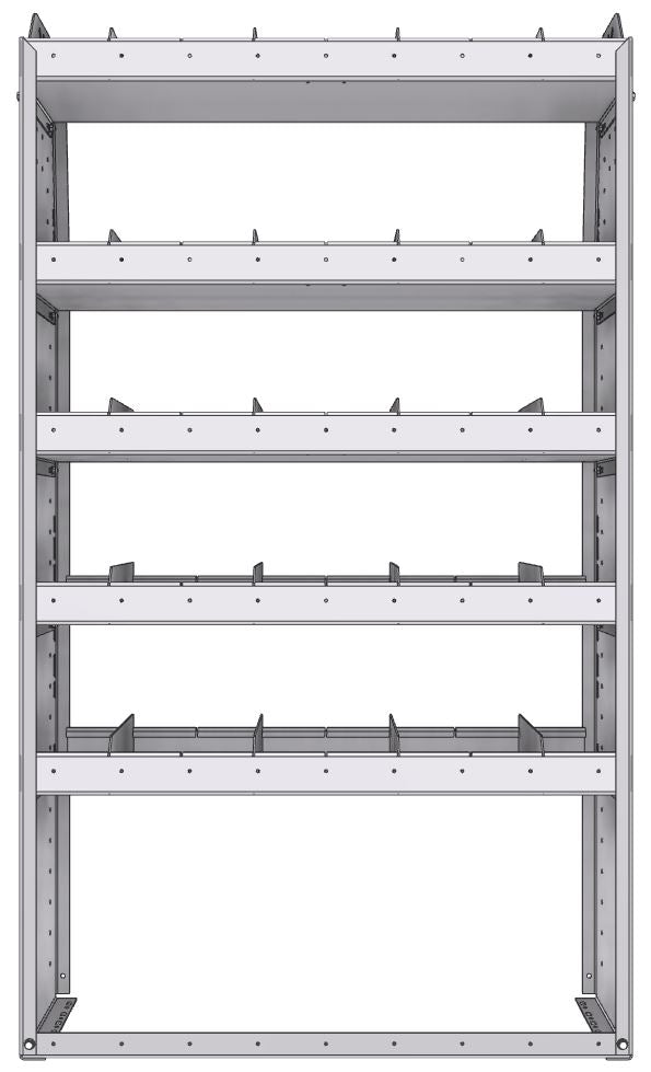 Profiled back shelf unit 36"Wide x 13.5"Deep x 63"High with 5 shelves