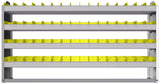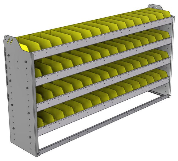 Square back bin shelf unit 69.125"Wide x 13.5"Deep x 36"High with 4 shelves