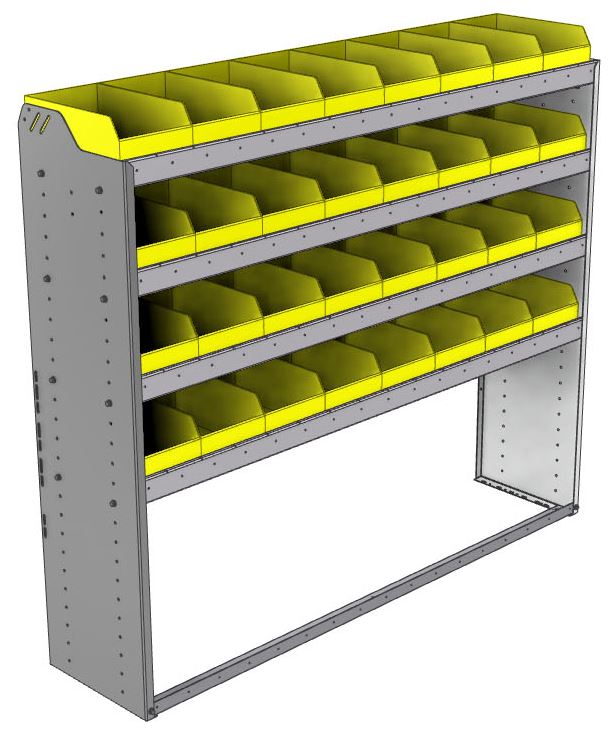 Square back bin shelf unit 69.125"Wide x 15.5"Deep x 58"High with 4 shelves