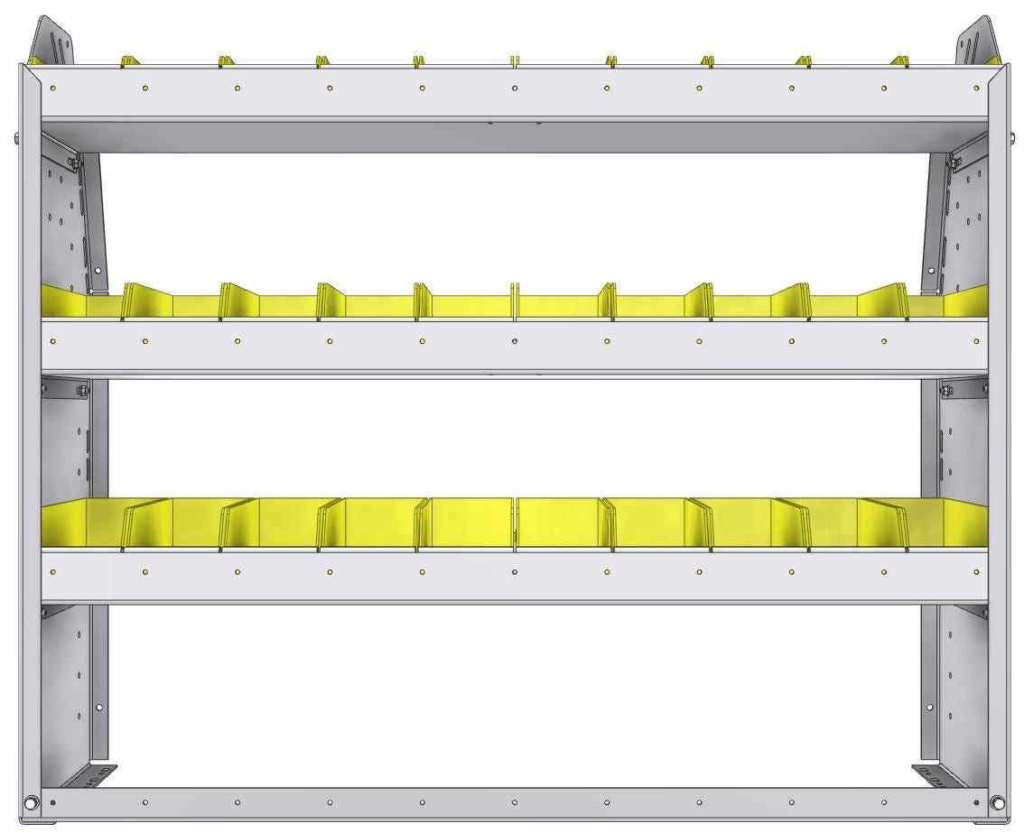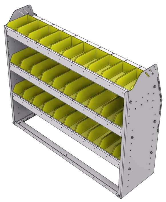 | Narrow shelf bin quantity | 10x SH-BIN dim.: 7-3/8"L X 4-1/8"W X 3"H |