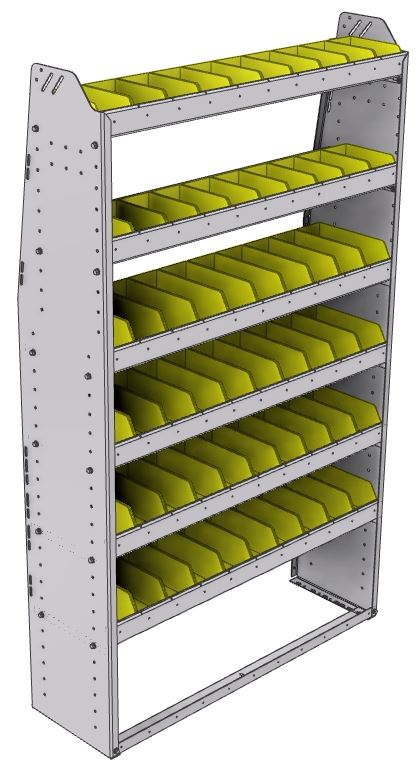Profiled back bin shelf unit 43"Wide x 13.5"Deep x 72"High with 6 shelves