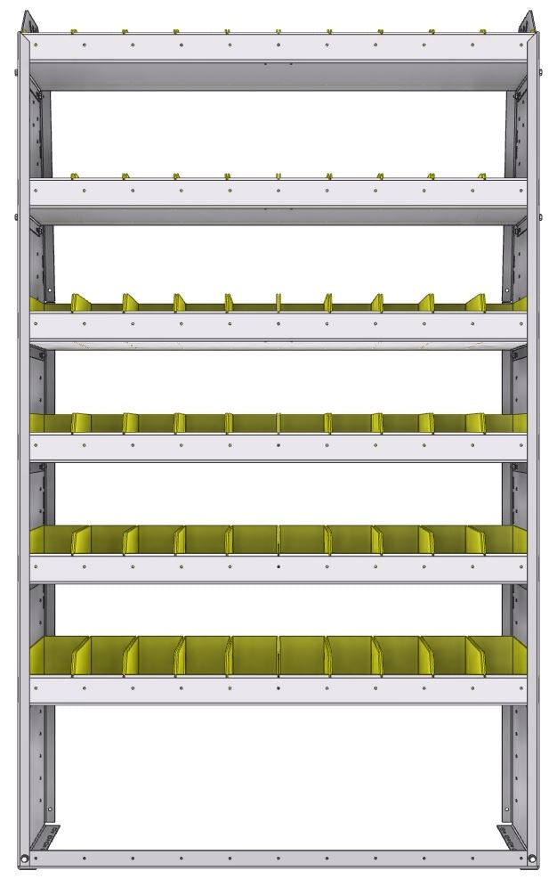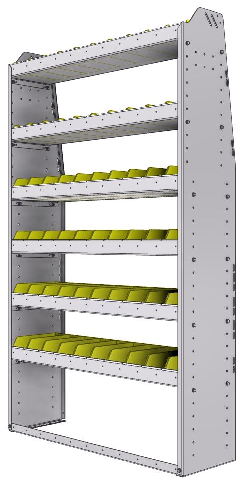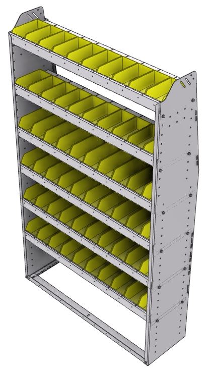 | Narrow shelf bin quantity | 20x SH-BIN dim.: 7-3/8"L X 4-1/8"W X 3"H |
