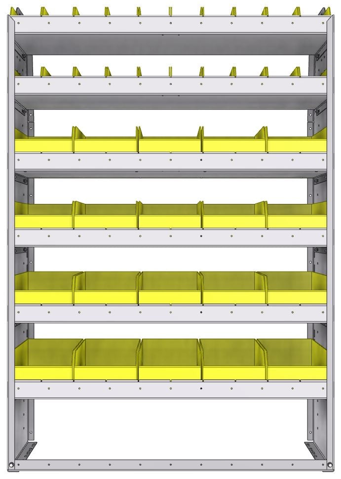 | Narrow shelf bin quantity | 20x MD-BIN dim.: 10-7/8"L X 4-1/8"W X 4"H |