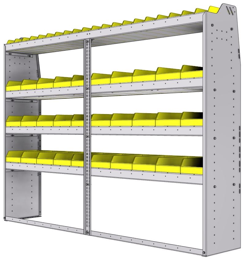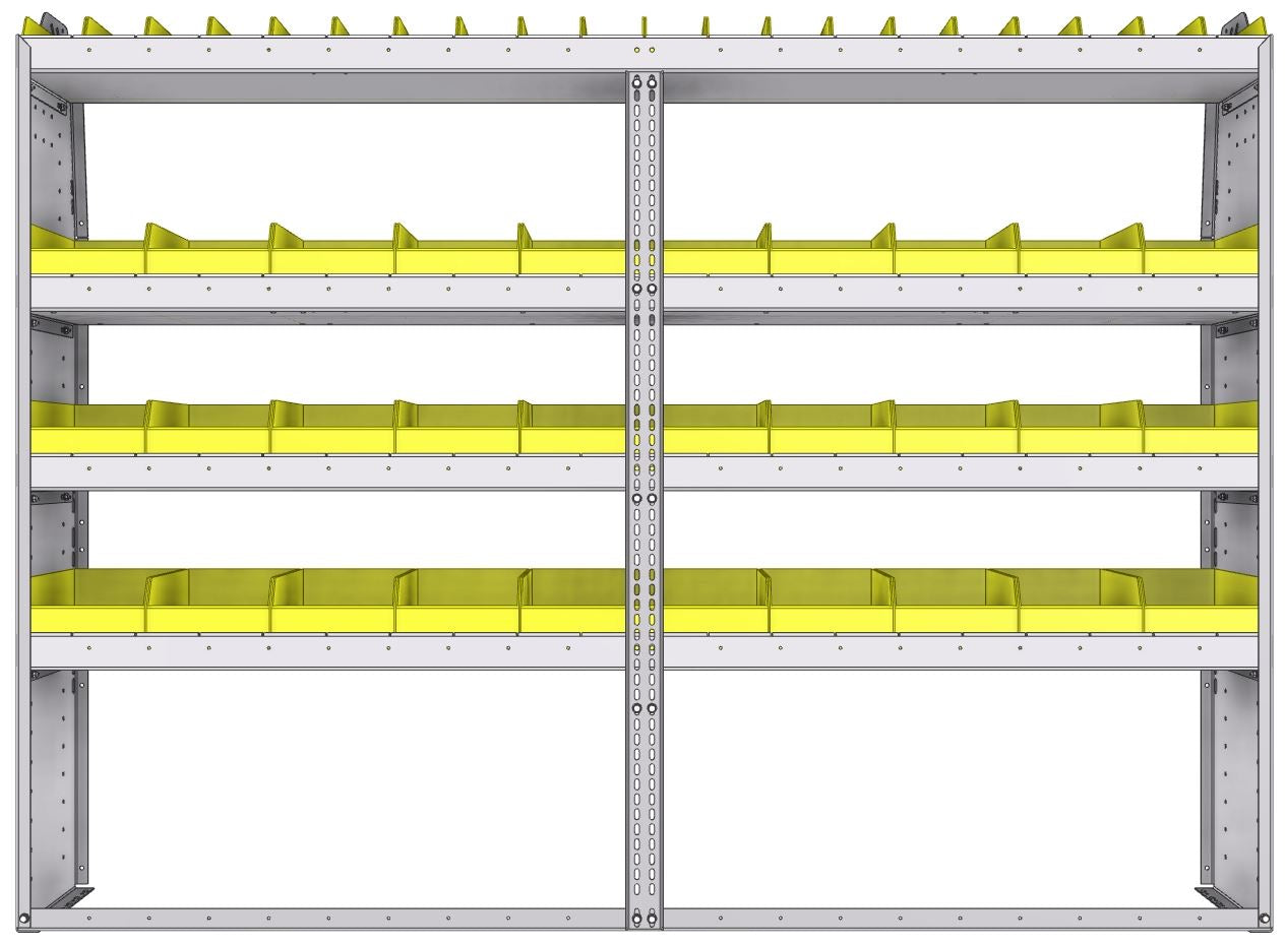 | Narrow shelf bin quantity | 20x MD-BIN dim.: 10-7/8"L X 4-1/8"W X 4"H |