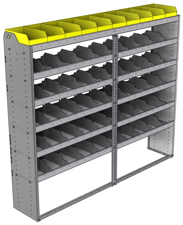 Square back bin separator combo shelf unit 86.375"Wide x 15.5"Deep x 72"High with 6 shelves