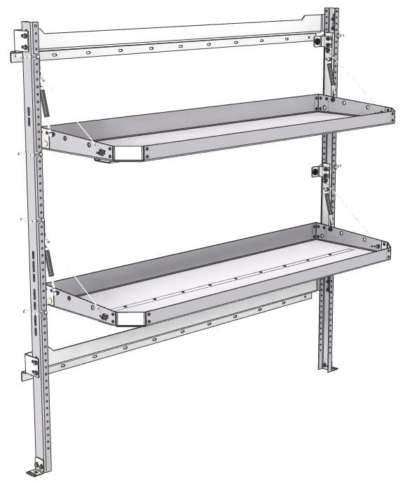 2 level fold-up shelving unit, 63"Wide x 18"Deep x 63"High