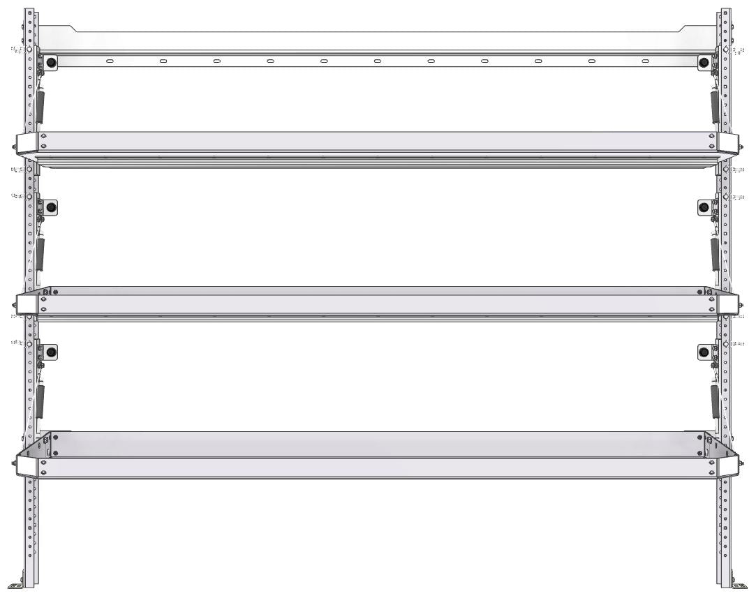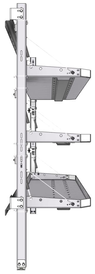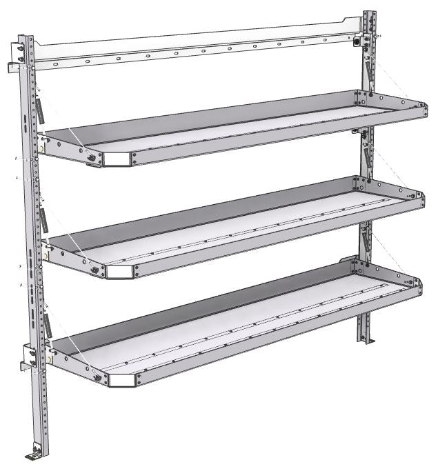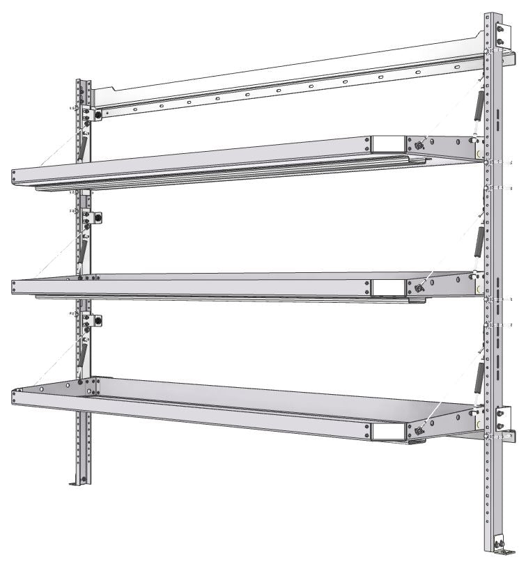 3 level fold-up shelving unit, 77"Wide x 18"Deep x 63"High