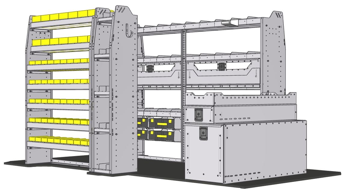 • 1X 23-4363-7 Profiled back bin shelf unit 43"Wide x 13.5"Deep x 63"High with 7 shelves