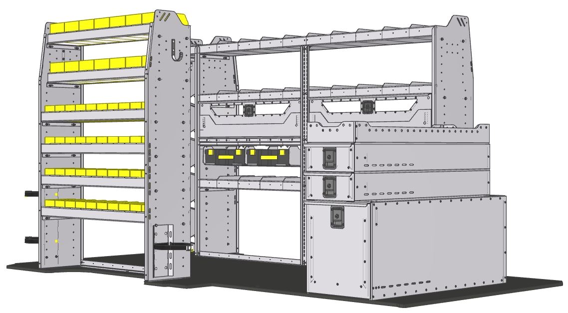 • 1X 23-4363-6 Profiled back bin shelf unit 43"Wide x 13.5"Deep x 63"High with 6 shelves