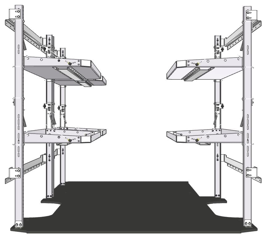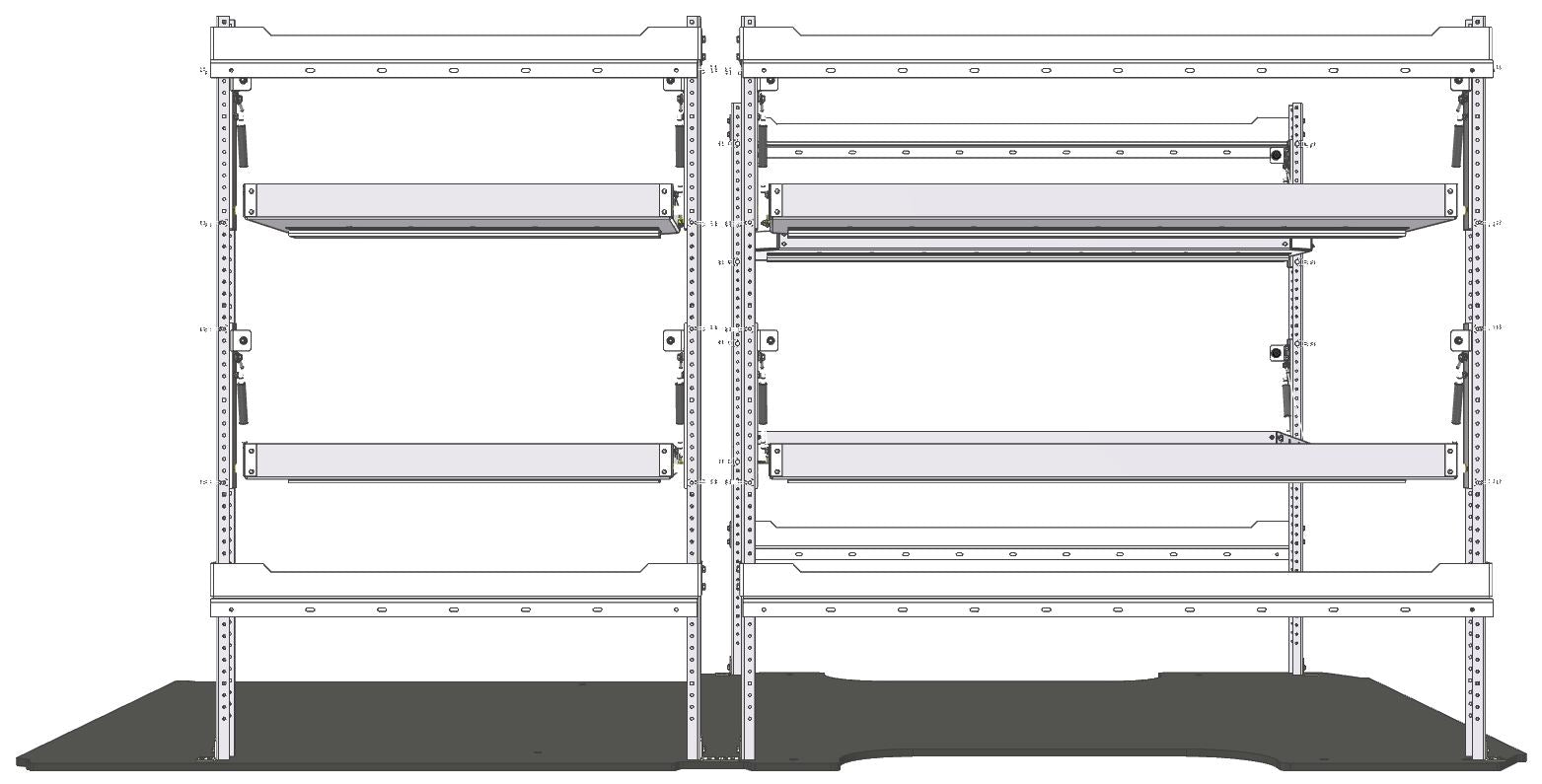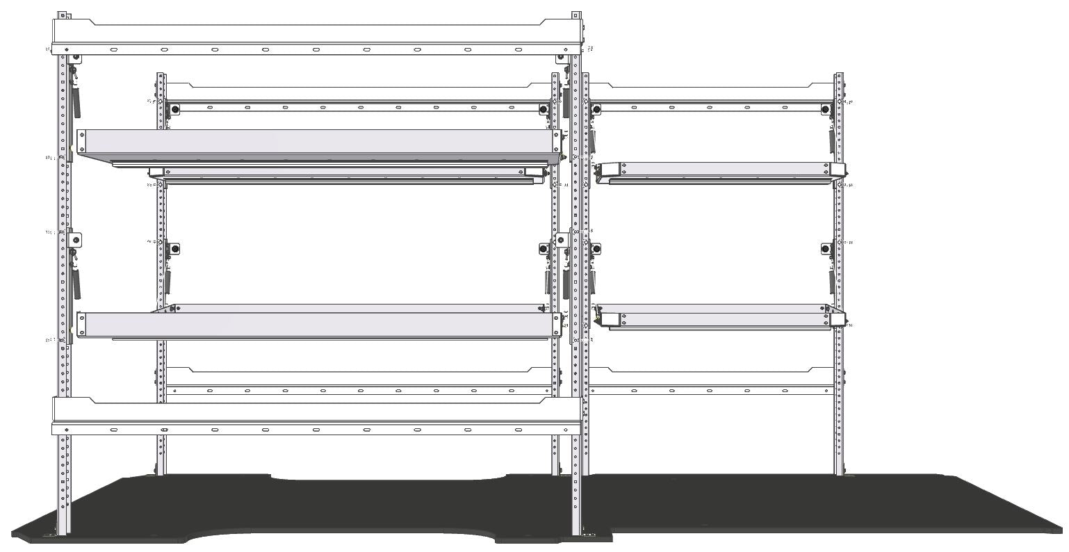 • 2X 26-6063-02 2 level fold-up shelving unit, 63"Wide x 21"Deep x 63"High