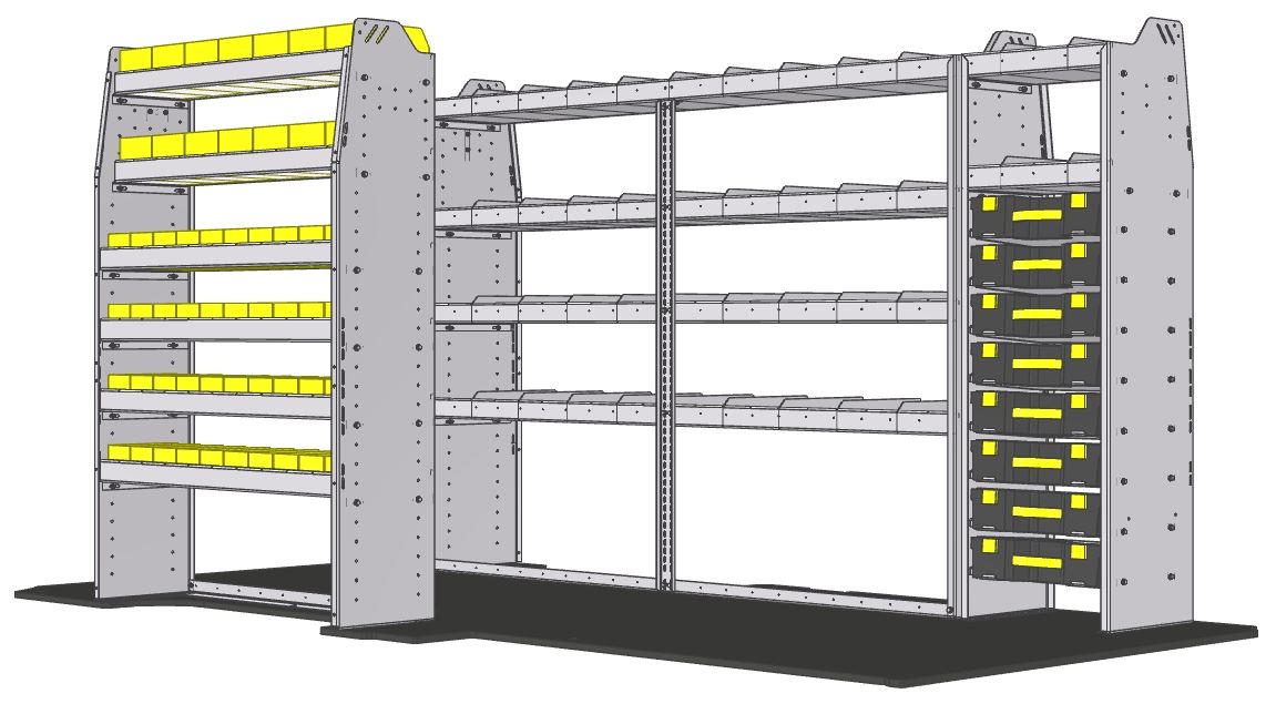 • 1X 23-4363-6 Profiled back bin shelf unit 43"Wide x 13.5"Deep x 63"High with 6 shelves