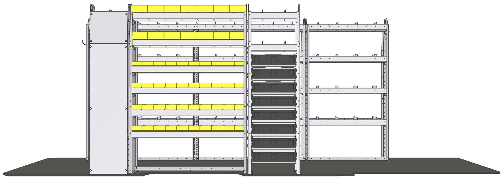 • 1X 23-4363-6 Profiled back bin shelf unit 43"Wide x 13.5"Deep x 63"High with 6 shelves